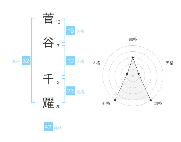 菅谷 千耀さんを姓名の画数から五運を鑑定