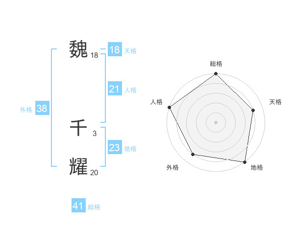 魏 千耀さんの総格は41画の5点!