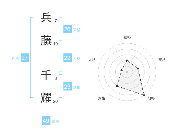 兵藤 千耀さんの外格は27画の3点!