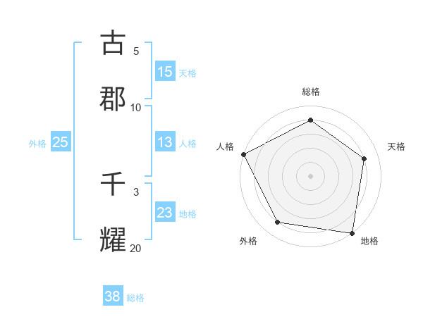 古郡 千耀さんを姓名の画数から五運を鑑定