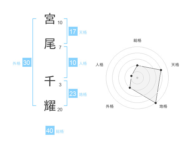 宮尾 千耀さんを姓名の画数から五運を鑑定