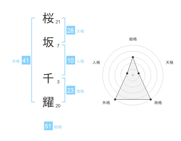 桜坂 千耀さんを姓名の画数から五運を鑑定