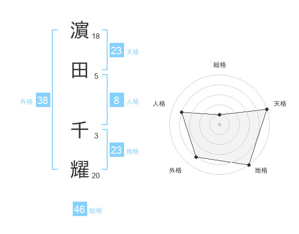 濵田 千耀さんの外格は38画の4点!