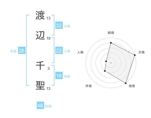 渡辺 千聖さんを姓名の画数から五運を鑑定