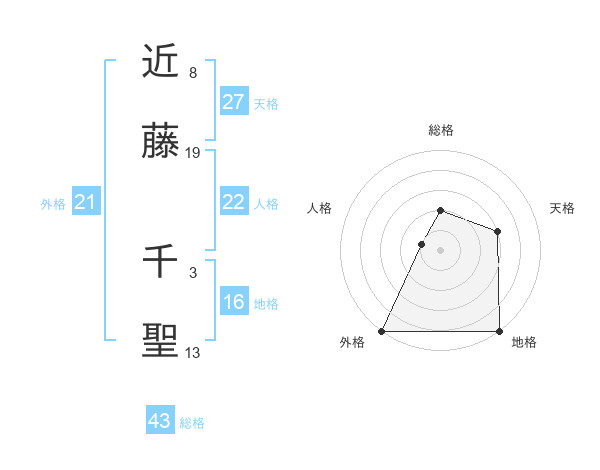 近藤 千聖さんを姓名の画数から五運を鑑定