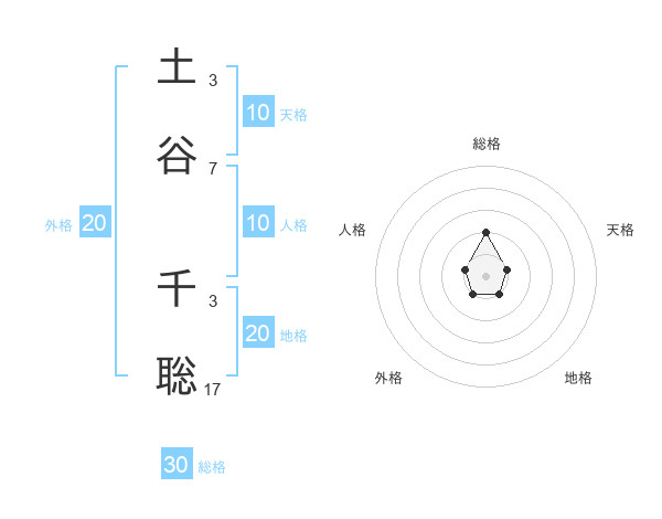 土谷 千聡さんを姓名の画数から五運を鑑定