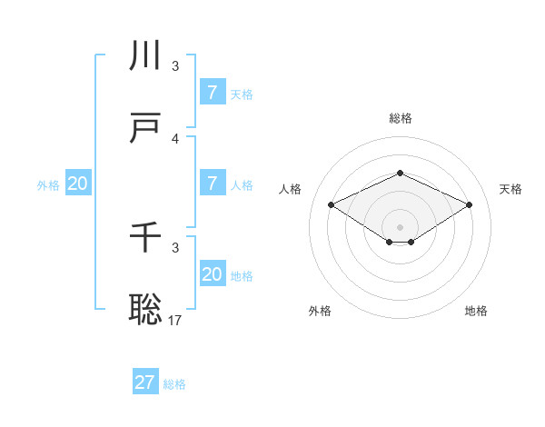 川戸 千聡さんを姓名の画数から五運を鑑定