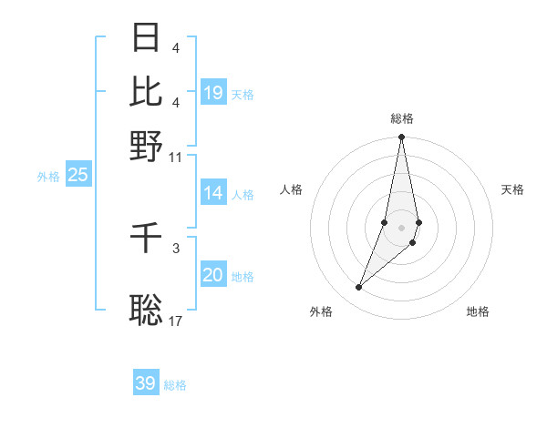 日比野 千聡さんを姓名の画数から五運を鑑定