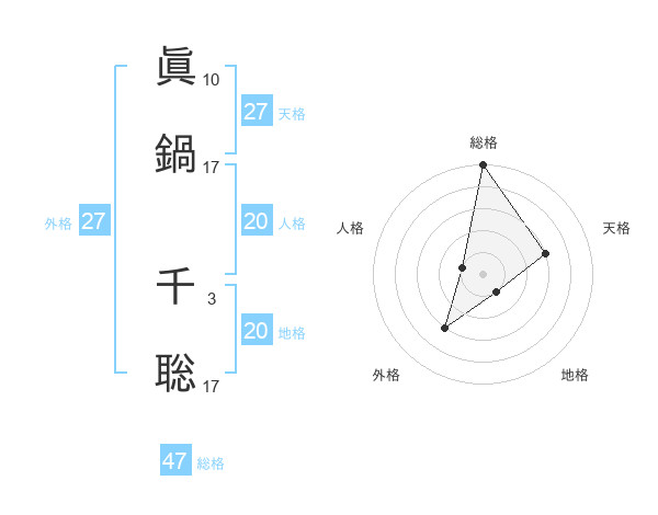 眞鍋 千聡さんを姓名の画数から五運を鑑定