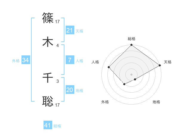 篠木 千聡さんの天格は21画の5点!
