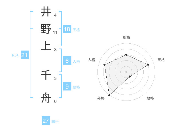 井野上 千舟さんを姓名の画数から五運を鑑定