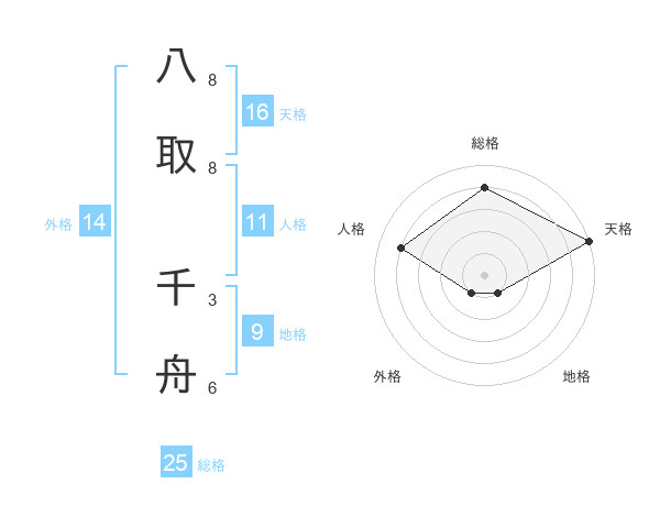 八取 千舟さんの総格は25画の4点!
