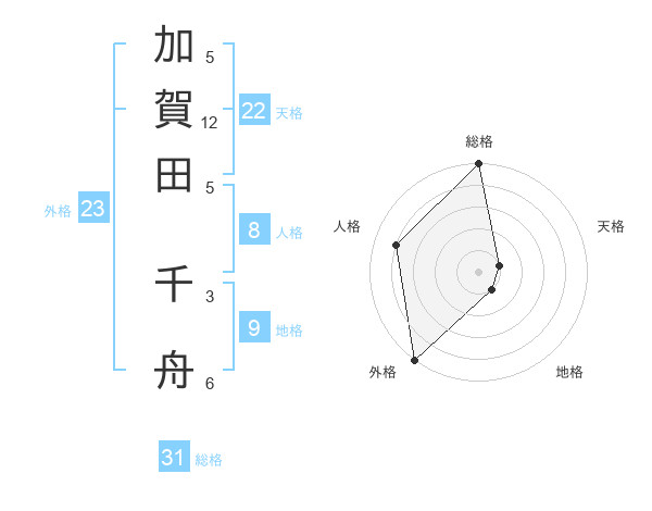 加賀田 千舟さんを姓名の画数から五運を鑑定