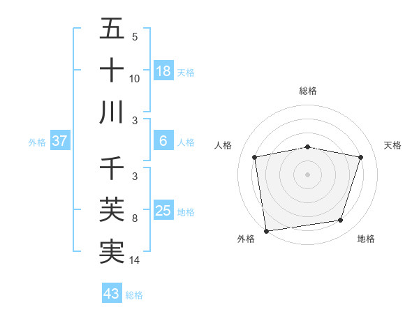 五十川 千芙実さんを姓名の画数から五運を鑑定