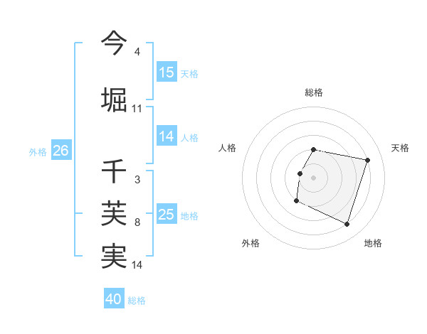 今堀 千芙実さんを姓名の画数から五運を鑑定