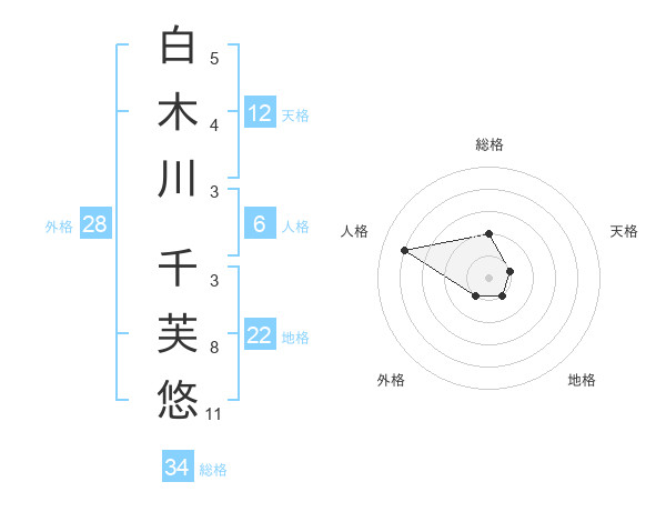 白木川 千芙悠さんを姓名の画数から五運を鑑定