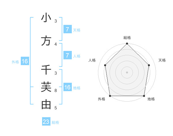 小方 千芙由さんを姓名の画数から五運を鑑定