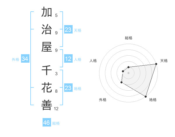 加治屋 千花善さんを姓名の画数から五運を鑑定