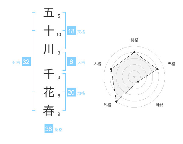 五十川 千花春さんを姓名の画数から五運を鑑定