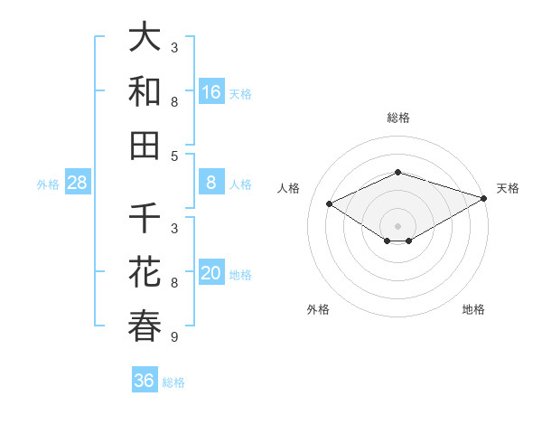 大和田 千花春さんを姓名の画数から五運を鑑定