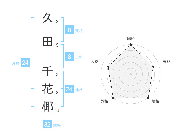 久田 千花椰さんを姓名の画数から五運を鑑定