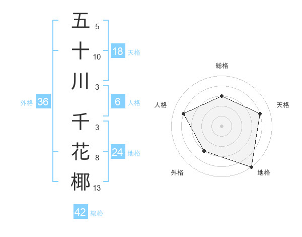 五十川 千花椰さんを姓名の画数から五運を鑑定