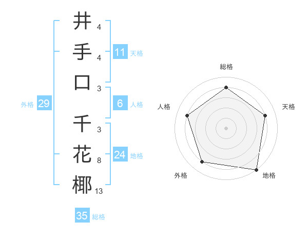井手口 千花椰さんを姓名の画数から五運を鑑定