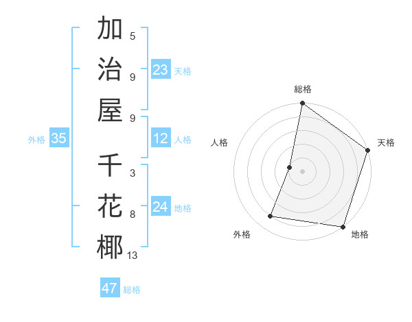 加治屋 千花椰さんを姓名の画数から五運を鑑定