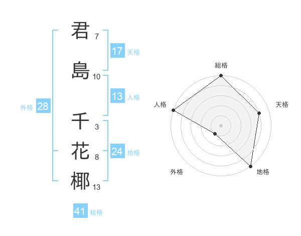 君島 千花椰さんを姓名の画数から五運を鑑定