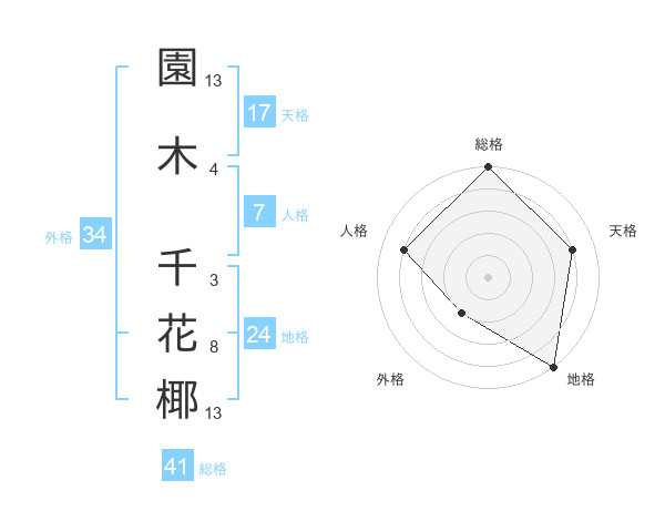 園木 千花椰さんを姓名の画数から五運を鑑定