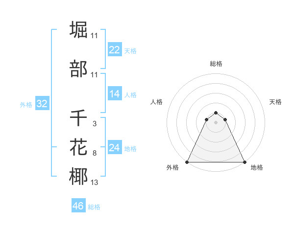 堀部 千花椰さんを姓名の画数から五運を鑑定