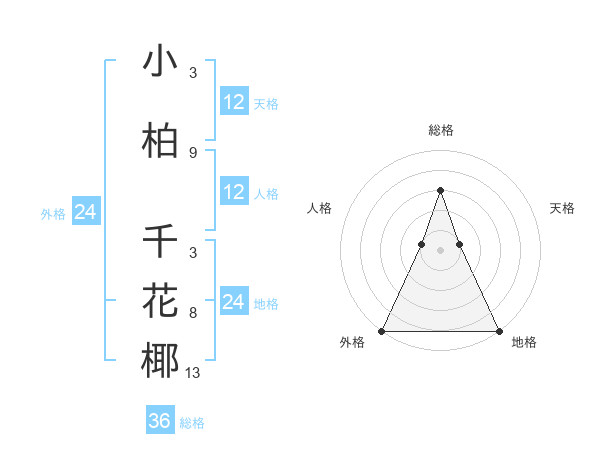 小柏 千花椰さんの天格は12画の1点!