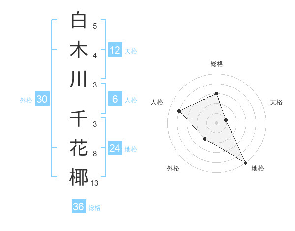白木川 千花椰さんの総格は36画の3点!