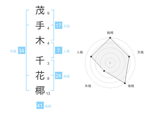 茂手木 千花椰さんを姓名の画数から五運を鑑定