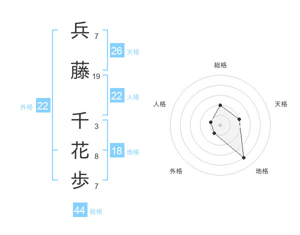 兵藤 千花歩さんを姓名の画数から五運を鑑定