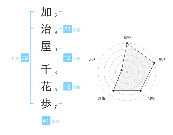 加治屋 千花歩さんを姓名の画数から五運を鑑定