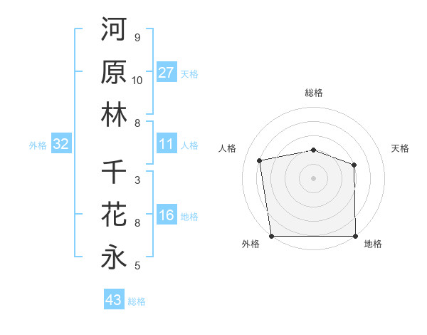 河原林 千花永さんを姓名の画数から五運を鑑定