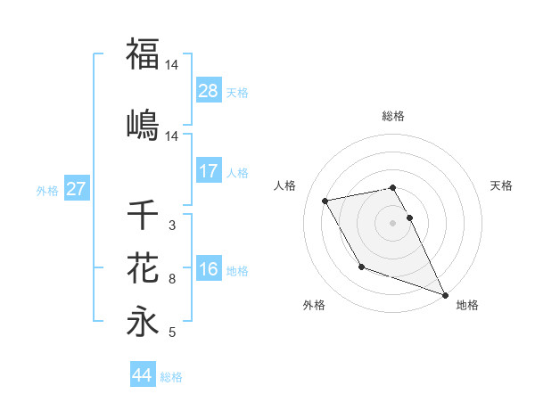 福嶋 千花永さんを姓名の画数から五運を鑑定
