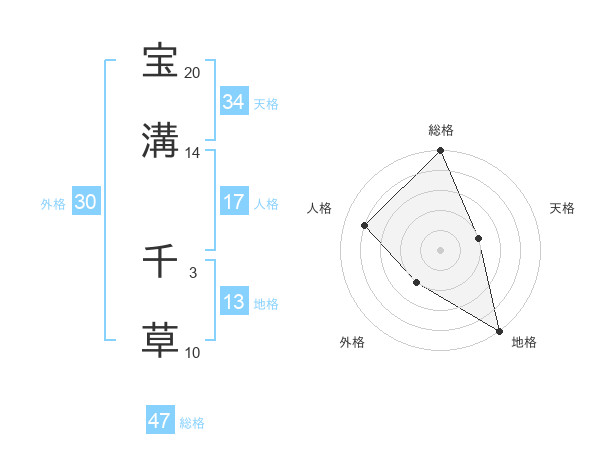 宝溝 千草さんを姓名の画数から五運を鑑定