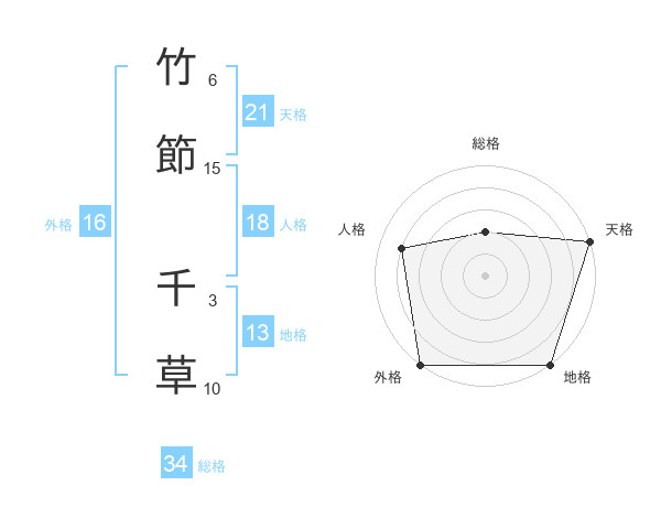 竹節 千草さんの天格は21画の5点!