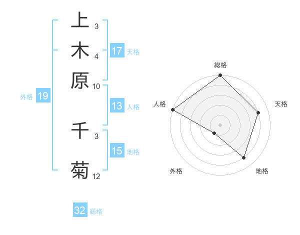 上木原 千菊さんを姓名の画数から五運を鑑定