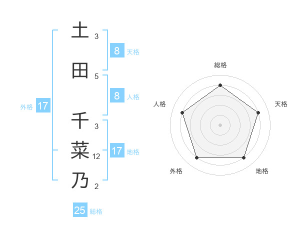 土田 千菜乃さんを姓名の画数から五運を鑑定