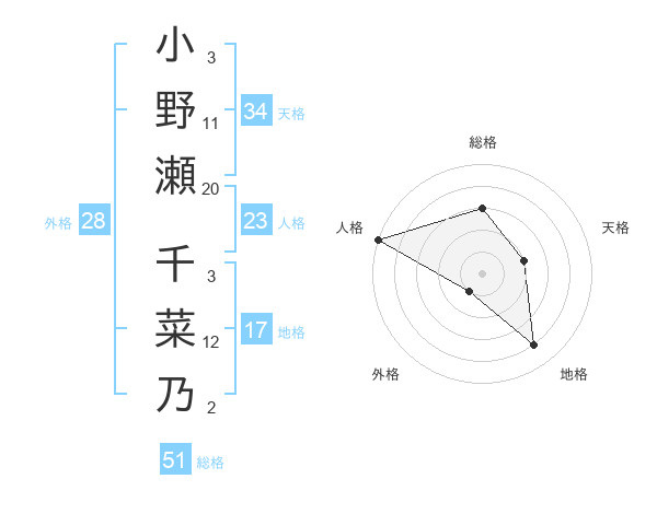 小野瀬 千菜乃さんを姓名の画数から五運を鑑定