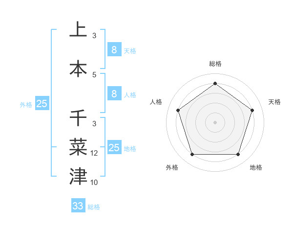 上本 千菜津さんを姓名の画数から五運を鑑定