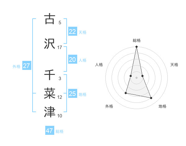 古沢 千菜津さんを姓名の画数から五運を鑑定