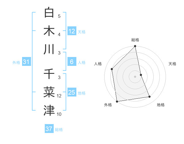 白木川 千菜津さんを姓名の画数から五運を鑑定