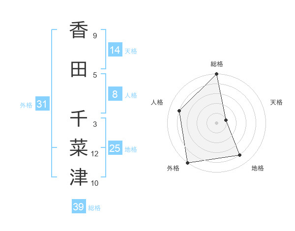 香田 千菜津さんを姓名の画数から五運を鑑定