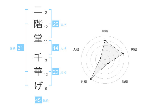 二階堂 千華げさんを姓名の画数から五運を鑑定