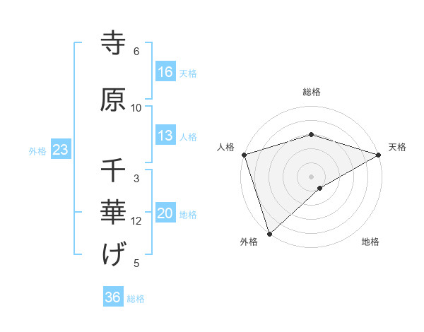 寺原 千華げさんを姓名の画数から五運を鑑定