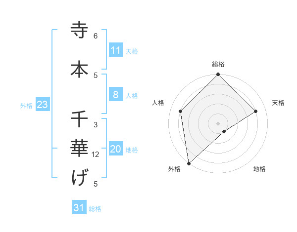 寺本 千華げさんの外格は23画の5点!